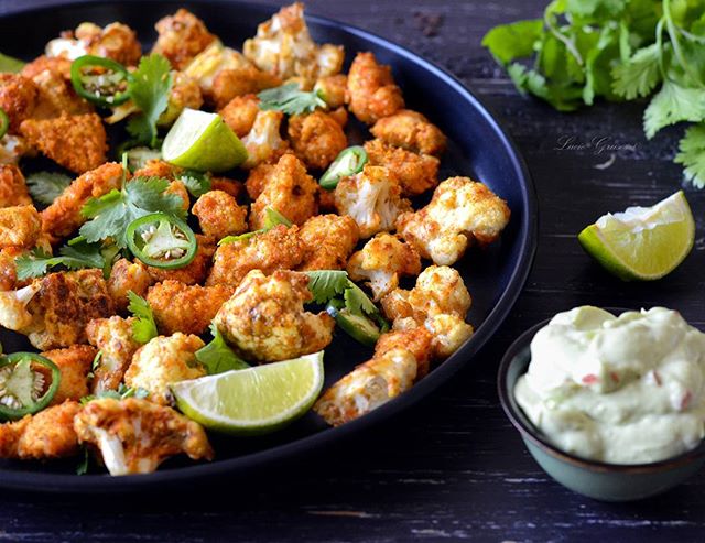 Taky tak milujete jíst rukama? 👌Já mám vždycky pocit, že mi pak to jídlo i víc chutná než s příborem 😉😋 Pečené mexické květákové a kuřecí nugety s guacamole majonézou (Roasted Mexican Cauliflower and Chicken Nuggets with Guacamole Mayonnaise) #paleo #primal #paleosnadno #podlegrusovky #glutenfree #lowcarb #keto #prkýnko #dnesjem #foodgallery_cz #f52grams #cauliflower #chicken #almondflour #egg #parmesan #avocado #garlic #tomato #mayonnaise #cilantro #lime
