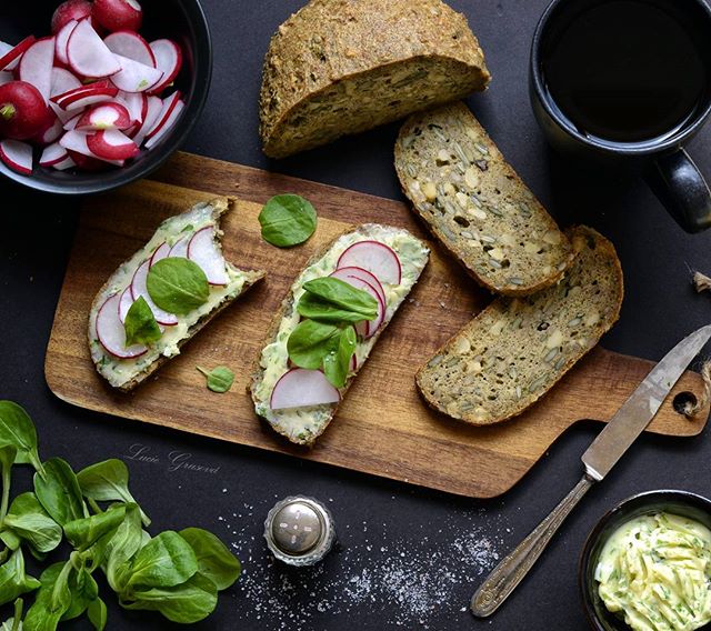 Už jste někdy přešlehali smetanu? A zkoušeli jste pak ve šlehání pokračovat? Jednou to udělejte. Vznikne vám úžasné domácí máslo. Stačí přimíchat nakrájené bylinky a sůl a hned máte hotovou fantastickou lahůdku 😋👌 Tady na domácím semínkovém chlebu s ředkvičkami (Seed Bread with Herb Butter and Radishes) #paleo #primal #paleosnadno #podlegrusovky #glutenfree #lowcarb #keto #prkýnko #dnesjem #foodgallery_cz #seed #egg #butter #herb #radishes