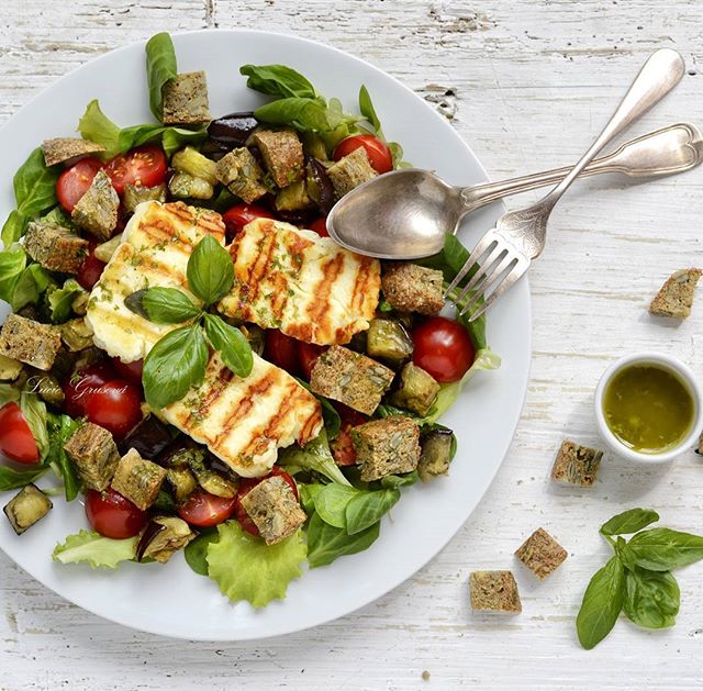 Když máte doma dobrá rajčata a kousek tvrdého chleba (já vím, tohle se v paleu moc nestává 😉), tak by vás měla hned napadnout Panzanella - skvělý toskánský salát, který je mega jednoduchý, ale taky mega dobrý. Já ho ještě doplnila pečeným lilkem a grilovaným sýrem Halloumi. Aneb když se potká italská kuchyně s řeckou 😋❤️👌(Panzanella with Roasted Eggplant and Halloumi Cheese) #paleo #primal #paleosnadno #podlegrusovky #glutenfree #lowcarb #keto #prkýnko #dnesjem #foodgallery_cz #panzanella #halloumi #oliveoil #vinegar #tomato #eggplant #garlic #basil #cornsalad #seedbread