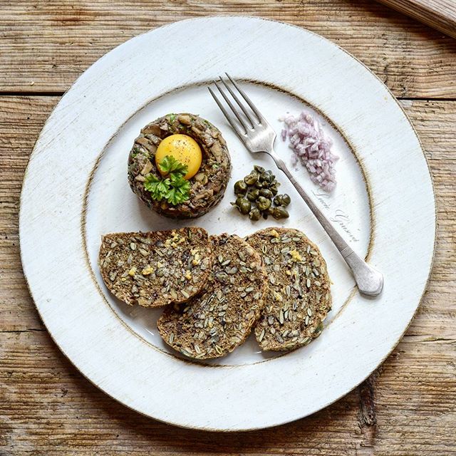 Vypadá to možná hrozně obyčejně, ale ta chuť. Ta chuť! Zamilovala jsem se 😂❤️ Houbový tatarák s domácím semínkovým chlebem (Mushroom Tartare with Homemade Seed Bread) #paleo #paleosnadno #podlegrusovky #glutenfree #dairyfree #lowcarb #keto #prkýnko #tartare #mushroom #shallot #garlic #oliveoil #coconutaminos #capers #caraway #parsley