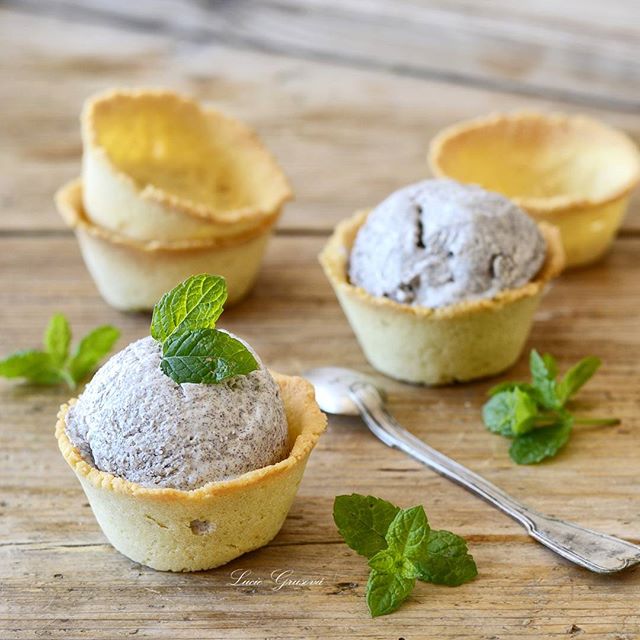 Nic tak neprověří fotografa jako focení zmrzliny v horkém počasí. Na nějaké změny v aranžmá není moc čas 📷🍦☀️ Maková zmrzlina v mandlových košíčkách (Poppy Seed Ice Cream in Almond Baskets) #paleo #paleosnadno #podlegrusovky #glutenfree #dairyfree #lowcarb #lchf #keto #prkýnko #icecream #poppyseed #coconutmilk #eggyolk #almondflour #egg