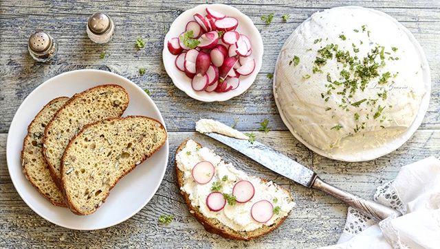 Když vám přes noc vykape jogurt se smetanou do podoby krásně nadýchaného sýru, neexistuje v tomhle horku lepší snídaně ❤️👌 Domácí "lučina" s jogurtovým lněným chlebem (Homemade Cream Cheese with Yogurt Flax Seed Bread) #primal #paleosnadno #glutenfree #podlegrusovky #lchf #lowcarb #keto #prkýnko #yogurt #cream #flaxseed