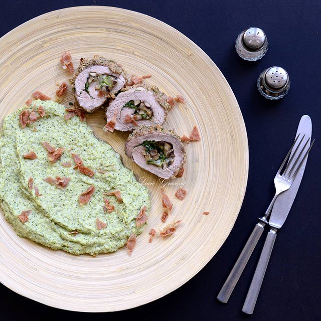 Dneska jsem připravovala cheesecake (doufám, že se povede a já vám ho budu moct zítra ukázat) a zbyl mi krémový sýr. Naopak mi chyběla smetana do kaše. Tak jsem tím sýrem tu smetanu nahradila. A víte co? Jinak už to dělat ani nebudu. Je to super 👌😋❤️ Roláda z vepřové panenky, brokolicová kaše s krémovým sýrem (Pork Tenderloin Roulade with Broccoli Cream Cheese Mash) #primal #paleosnadno #glutenfree #podlegrusovky #lchf #lowcarb #keto #prkýnko #pork #tenderloin #mushroom #cheese #pecan #parmesan #broccoli #garlic #creamcheese