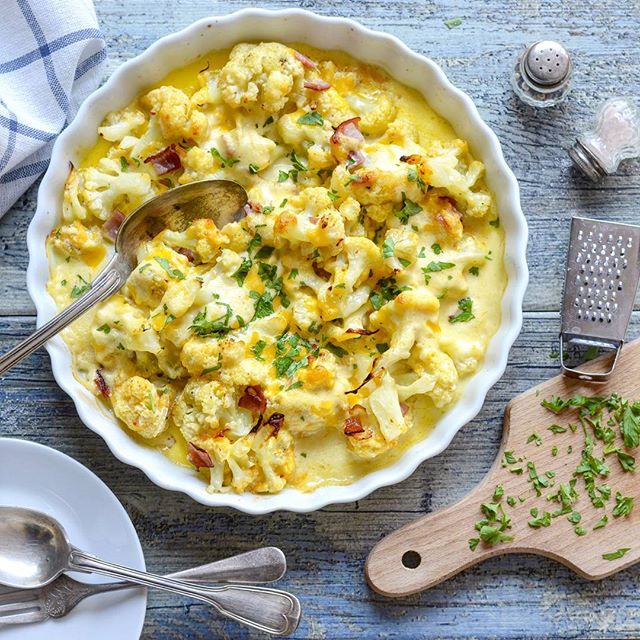 Ukázková situace - něco si uvaříte. Spořádaně si nandáte porci. Nad talířem si lebedíte, jaká je to lahoda. Dojíte, jdete druhou porci hezky uklidit do lednice. Ale je to tak dobré, že neodoláte a ujíte jedno sousto. A pak další... a další. Nakonec je toho tak málo, že to ani nemá cenu uklízet 🤔 Že v tom nejsem sama, že ne? 😂 Gratinovaný květák (Cauliflower Gratin) #primal #paleosnadno #glutenfree #podlegrusovky #lchf #lowcarb #keto #prkýnko #cauliflower #cream #cheddar