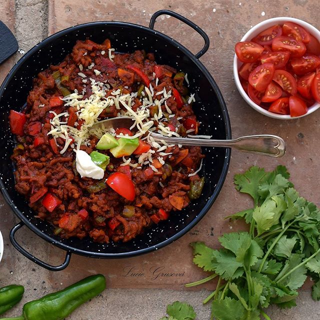 Zkoušeli jste někdy přidat čokoládu do masové směsi? Pokud ne, tak to určitě zkuste. Lahoda! ❤️👍Mexická masová směs s čokoládou (Mexican Beef Skillet with Chocolate) #primal #paleosnadno #podlegrusovky #glutenfree #lowcarb #lchf #prkýnko #mexican #beef #onion #garlic #bellpepper #tomato #chocolate #cilantro #cheddar #sourcream #lime