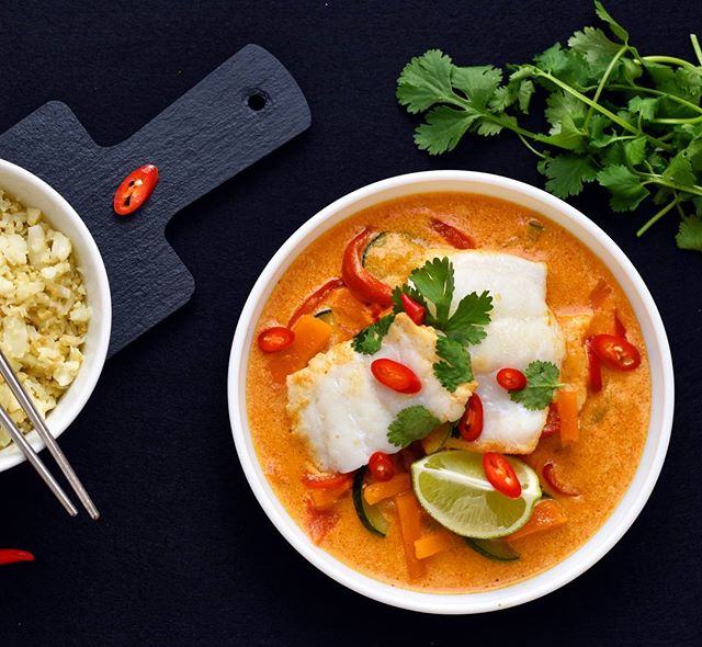 Potřebujete se zahřát? Pak určitě sáhněte po thajském curry. Nejen že vás pořádně rozhicuje, ještě ho můžete mít hotové klidně do pár minut ☺️👍❤️Thajské rybí curry (Thai Fish Curry) #whole30 #paleo #paleosnadno #podlegrusovky #glutenfree #dairyfree #lowcarb #lchf #prkýnko #jsemlowcarb #curry #pumpkin #bellpepper #zucchini #cod #lime #cilantro #coconutmilk #redcurrypaste #cauliflower
