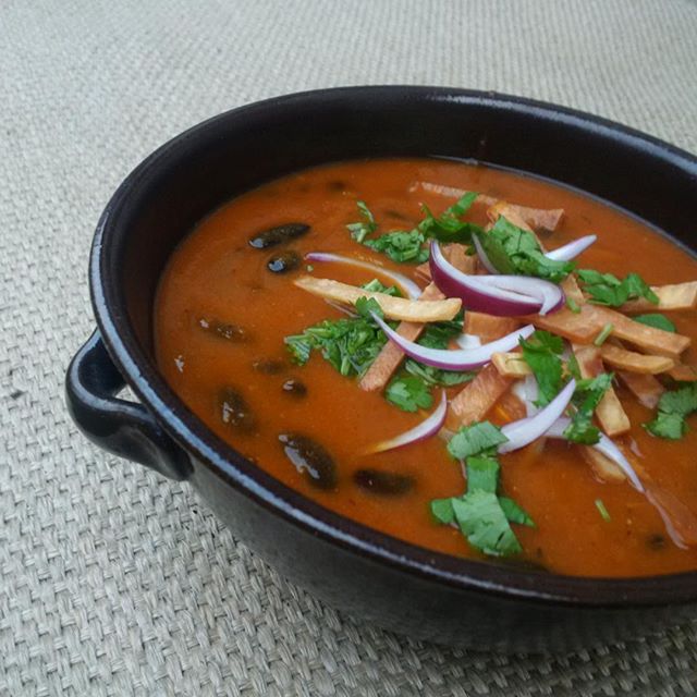 Dalším klasickým mexickým pokrmem je fazolová polévka Sopa de frijoles negros. Občas jí dělávám, většinou ze dvou druhů fazolí, červené rozmixuji a černé nechám jen tak, aby v polévce bylo do čeho kousnout. Zkombinovala jsem v tomhle receptu svou fazolovou s tou vaší všudepřítomnou mixovanou kokosopálivou polévku a koukejte, že to jde i jinak! Dýňová polévka s fazolemi, trochou protlaku, pěkně kořeněná římským kmínem, skořicí, hřebíčkem, tymiánem (epazote nemám, tak vynechám), oregánem a pyré z chipotle papriček, dochucená octem, podávaná se zakysanou smetanou, smaženými tortilovými proužky, červenou cibulí a čerstvým koriandrem. Dýni by v tom nenašel ani @cubacubicula ani Jarek od @dakrup Přísahám! #carovnymlyn #zmlynskekuchyne #prkynko #soutez #varimzdyne