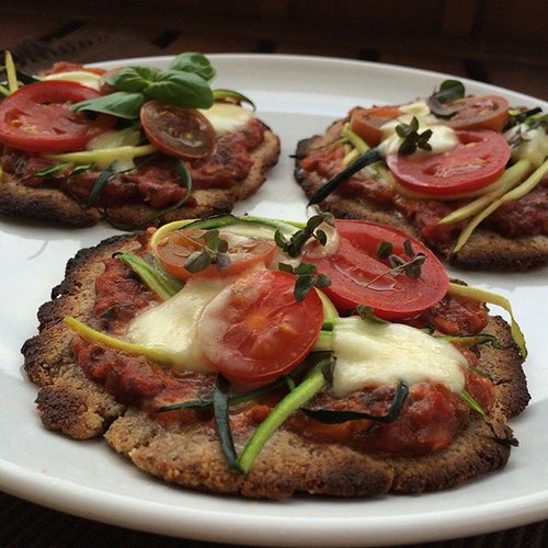 Pizza netradičně...korpus bez lepku z mandlí a chia #pizza #glutenfreepizza #almondflour #chiaseeds #tomatosugo #zucchini #mozzarella #prkýnko