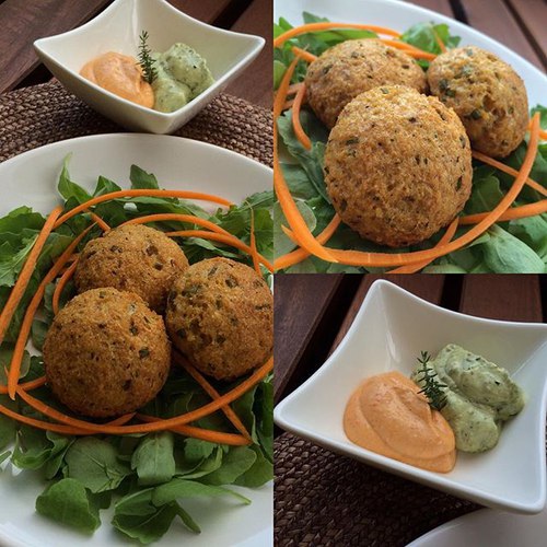 Kuskusové kuličky s mozzarellou & dip z tofunézy ochucený bazalkovým pestem a ajvarem #dinner #healthy #couscous #mozzarella #tofumayonnaise #basilpesto #ajvar #delicious #prkýnko