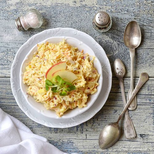 Některé recepty ze stránek by bylo škoda nedat do zimní kuchařky. Jako třeba skvělý celerový salát s jablky. Jen je musím přefotit 📸 Většina původních fotek je vážně nepoužitelných. Jak jsem s nima mohla být dřív spokojená? Nechápu 😱😁 (Celeriac Salad) #whole30 #paleo #primal #paleosnadno #podlegrusovky #glutenfree #dairyfree #salad #celeriac #carrot #apple #onion #mayonnaise #eatclean #instafood #foodporn #prkýnko #jerf #nebevhube #dnesjim #dnesjem #cookbook #winter