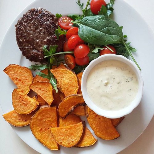 Den 30 jídlo 2 - Rychlý oběd. Dokonce tak rychlý, že jsem nestíhala ani fotit. Za fotku díky @anneligrusova 😉 👍📷 Hovězí burger, pečené batáty, domácí tatarská omáčka (Beef Burger, Roasted Sweet Potatoes, Tartare Sauce) #whole30 #paleo #paleosnadno #podlegrusovky #glutenfree #dairyfree #burger #sweetpotato #mayonnaise #eatclean #instafood #foodporn #prkýnko #jerf #dnesjem #dnesjim #foodblog