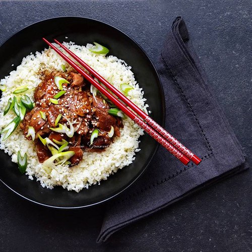 Další dobrůtka z pomalého hrnce - Teriyaki kuře, doplněné květákovou "rýží" (Slow Cooker Teriyaki Chicken with Cauliflower "Rice") #paleo #paleosnadno #podlegrusovky #glutenfree #dairyfree #chicken #coconutaminos #honey #balsamic #ginger #garlic #cauliflower #scallion #eatclean #instafood #foodporn #prkýnko #jerf #dnesjem #dnesjim #foodblog #cookbook