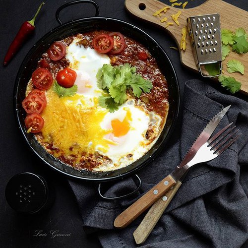 Když vám zbyde hodně chili con carne od večeře, použijte ho i na snídani. Třeba jako základ shakshuky 😉 Klidně smíchejte několik národních kuchyní dohromady. Prostě taková mexicko-africká fusion 😂 (Chili Con Carne Shakshuka) #paleo #primal #paleosnadno #podlegrusovky #glutenfree #breakfast #shakshuka #chiliconcarne #egg #eatclean #instafood #foodporn #prkýnko #jerf #dnesjem #foodblog #foodgallery_cz #f52grams