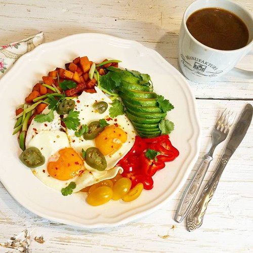 Mexická snídaně (Mexican Breakfast) #whole30 #paleo #primal #paleosnadno #mexican #friedegg #sweetpotato #cumin #chillipepper #avocado #cilantro #tomato #bellpepper #springonion #cilantro #jalapeno #spicyfood #bestever #eatclean #instafood #foodporn #prkýnko #breakfast