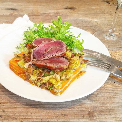 Zapečená kapusta s batáty a houbami, plátky srnčích medailonků (Baked Kale & Sweet Potato Casserol, Venison Medallions) #whole30 #paleo #primal #paleosnadno #sweetpotato #kale #onion #garlic #wildmushrooms #eggs #venison #eatclean #instafood #foodporn #prkýnko