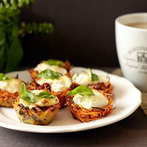 Ačkoliv mléčné výrobky moc často nejím, občas si s chutí dám kozí sýr. V kombinaci třeba se sušenými rajčaty a čerstvými bylinkami je nepřekonatelný 😋 Batátové košíčky s kozím sýrem a sušenými rajčaty (Sweet Potato Nests with Goat Cheese and Dried Tomato) #primal #paleosnadno #glutenfree #podlegrusovky #sweetpotato #goatcheese #tomato #basil #egg #eatclean #instafood #foodporn #prkýnko #jerf #nebevhube #dnesjem #dnesjim #breakfast