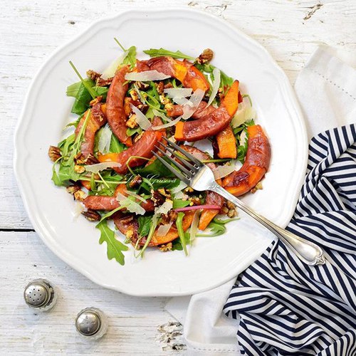Chilli ořechy mi dneska vyloženě učarovaly ❤️ Tak jsem si je přidala i do večeře. Ale jsou tak výborné, že na ně budu muset udělat samostatný recept 😋👌 Pečená dýně v prosciuttu, chilli ořechy a parmezán (Pumpkin Wrapped in Prosciutto, Chilli Nuts and Parmesan) #paleo #primal #paleosnadno #podlegrusovky #glutenfree #pumpkin #prosciutto #pecan #cashew #chillipepper #paprika #parmesan #arugula #eatclean #instafood #foodporn #prkýnko #dnesjem #foodblog #foodgallery_cz #f52grams