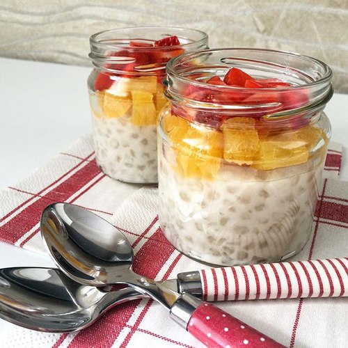 Svačinka do práce...tapioka puding. Znáte? Připravený s kokosovým mlékem🍓🍊 Snack to work...tapioca pudding with fruit #snack #towork #tapioca #tapiocapearl #tapiocapudding #withfruit #coconutmilk #healthy #vegetarian #veganotic #prkýnko #hautecuisines #thefeedfeed #feedfeed