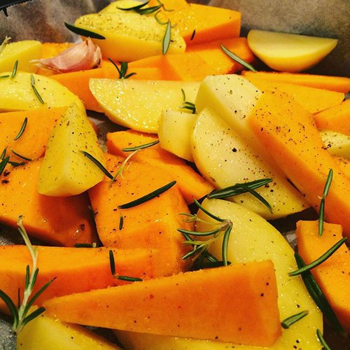 A šup do trouby...máslová dýně, brambory a rozmarýn. Pečenou zeleninu můžu na všechny způsoby. Potatoes, butternut squash and rosemary .... and now, in the oven. Roasted vegetables, that I can. #vegetables #butternutsquash #potatoes #rosted #roastedvegetables #healthy #vegetarian #prkýnko #feedfeed #hautecuisines
