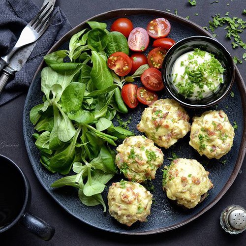 Dnešní snídani stíhám až po obědě 🙈🙊 Žampióny plněné kozím sýrem a slaninou (Goat Cheese Stuffed Mushrooms) #paleo #primal #paleosnadno #podlegrusovky #glutenfree #lowcarb #keto #prkýnko #mushroom #goatcheese #bacon #egg #dnesjem #foodgallery_cz
