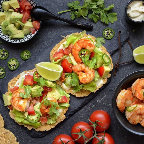 Taky tak milujete krevety? ❤️😋 Tacos s chilli krevetami (Chilli Prawn Tacos) #paleo #paleosnadno #podlegrusovky #glutenfree #dairyfree #lowcarb #keto #taco #coconutflour #psyllium #flaxseed #egg #prawn #avocado #tomato #cilantro #lime #mayonnaise #jalapeno #prkýnko #dnesjem #foodgallery_cz