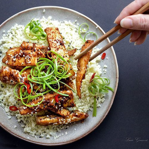 Když jsem byla malá, tak se u nás doma ryby moc nejedly. Maximálně tak obalované filé 🙈🐳 Proto neustále hledám nové způsoby, jak ryby zařadit do mého jídelníčku. A tohle by šloooooo 😋👌❤️ Okoun na asijský způsob s květákovou rýží (Asian-style Zander with Cauliflower Rice) #whole30 #paleo #paleosnadno #podlegrusovky #glutenfree #dairyfree #prkýnko #dnesjem #foodgallery_cz #lowcarb #keto #fish #zander #ginger #chillipepper #garlic #coconutaminos #balsamic #sesame #cauliflower #scallion