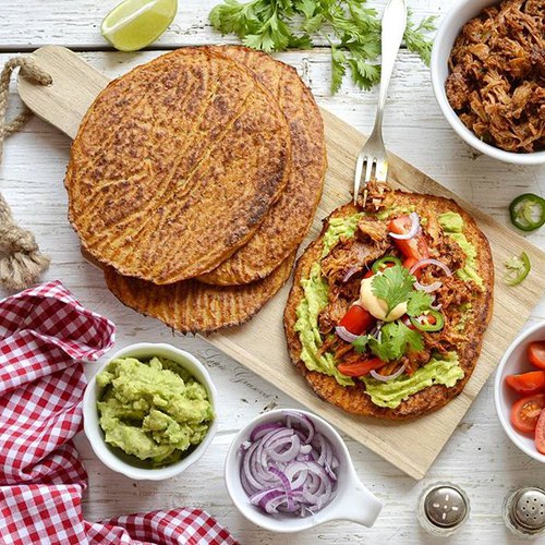 Zjednodušte si práci a jedno jídlo použijte jako základ jiného. Maso z včerejších žebírek jsem natrhala na kousky a smíchala s výpekem. Pak už stačí vymyslet, s čím ho budete podávat. Šla by třeba květáková rýže, u mě ale dnes zvítězily květákové tortily 😋❤️🍽️ (Cauliflower Tortillas with Pulled Pork) #paleo #paleosnadno #podlegrusovky #glutenfree #dairyfree #lowcarb #keto #prkýnko #cauliflower #egg #onion #garlic #avocado #lime #cilantro #jalapeno #tomato
