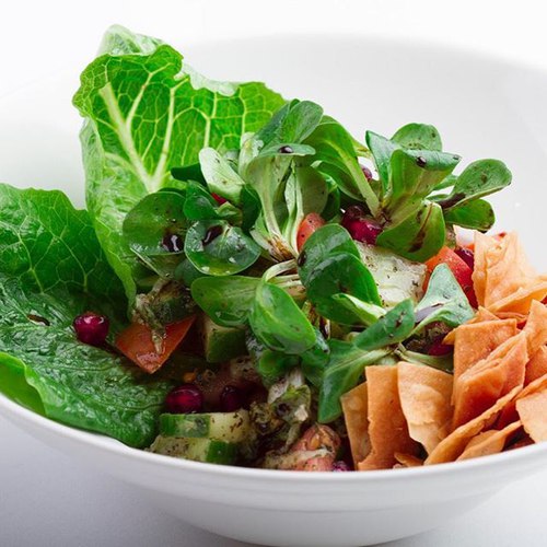 Fatuš zeleninový salát s polníčkem česnekem a otcem. Výcodní Středomoří. #prkýnko #noorhradec