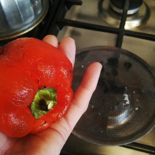Dobré ráno! Znáte tenhle fígl? Tedy pokud máte plynový sporák ;) Nemusíte roztápět gril, papriku opálíte do černa na rozptylce na plotýnce. Na rozdíl od pobytu pod grilem v troubě se skrznaskrz neupeče a nerozblemcá. Zůstane celá a pevná a kůže se pod vodou krásně sloupne. Roky už to nedělám jinak. #carovnymlyn #zmlynskekuchyne #prkynko #paprika